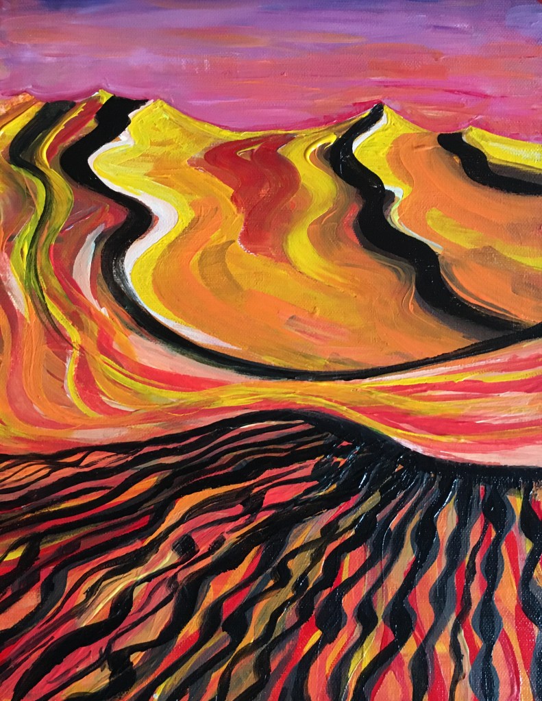 The vastness of deserts have always bewitched me. I’m not sure why, maybe it is because deserts are one of the few places on earth which appear to be frozen in time, with only the invisible wind to move the sand. The colours, rock formations and patterns are always different, yet the emptiness is the same. This is my depiction of the shifting sand dunes Sahara in Southern Morocco.